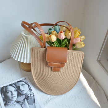 絶妙な韓国のハンジクラフトショルダーバッグ手織り軽量通気性ペーパーロープ迅速配達-カジュアルな日常使用